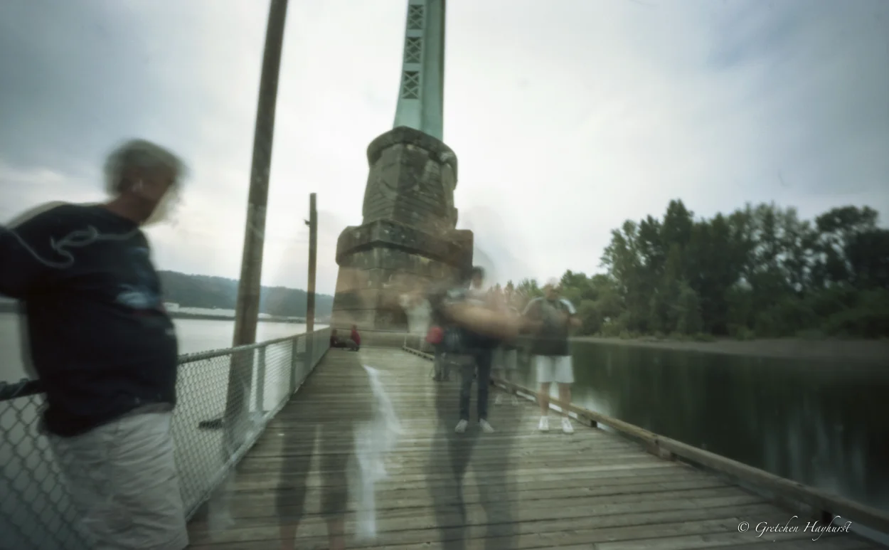 Because of the long exposures, rushing water smooths out, people walking by either disappear completely or look ghostly. These are things that pinhole photographers love.