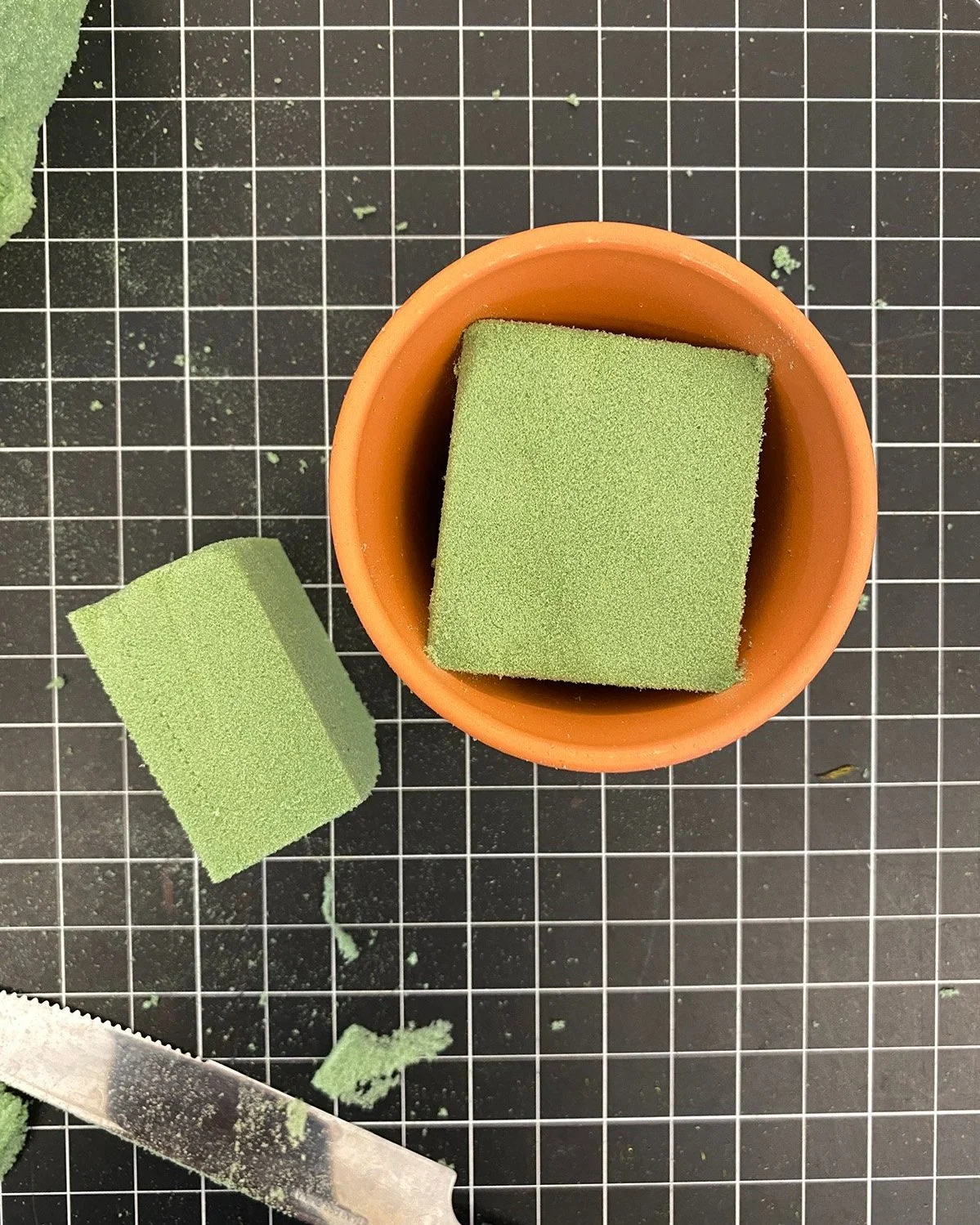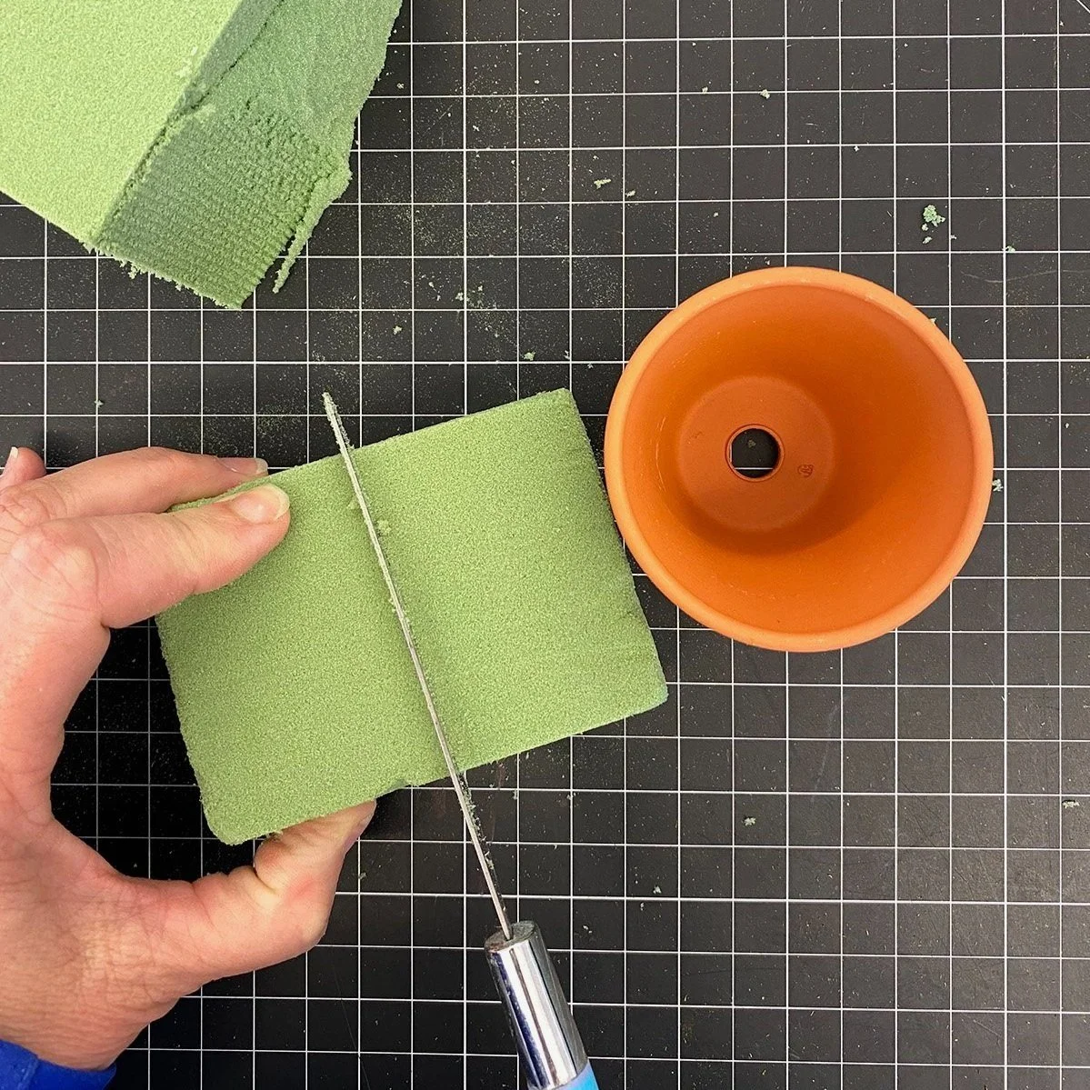 2) Squish the foam into the pot so it is secure and rests 1/4” below the rim.