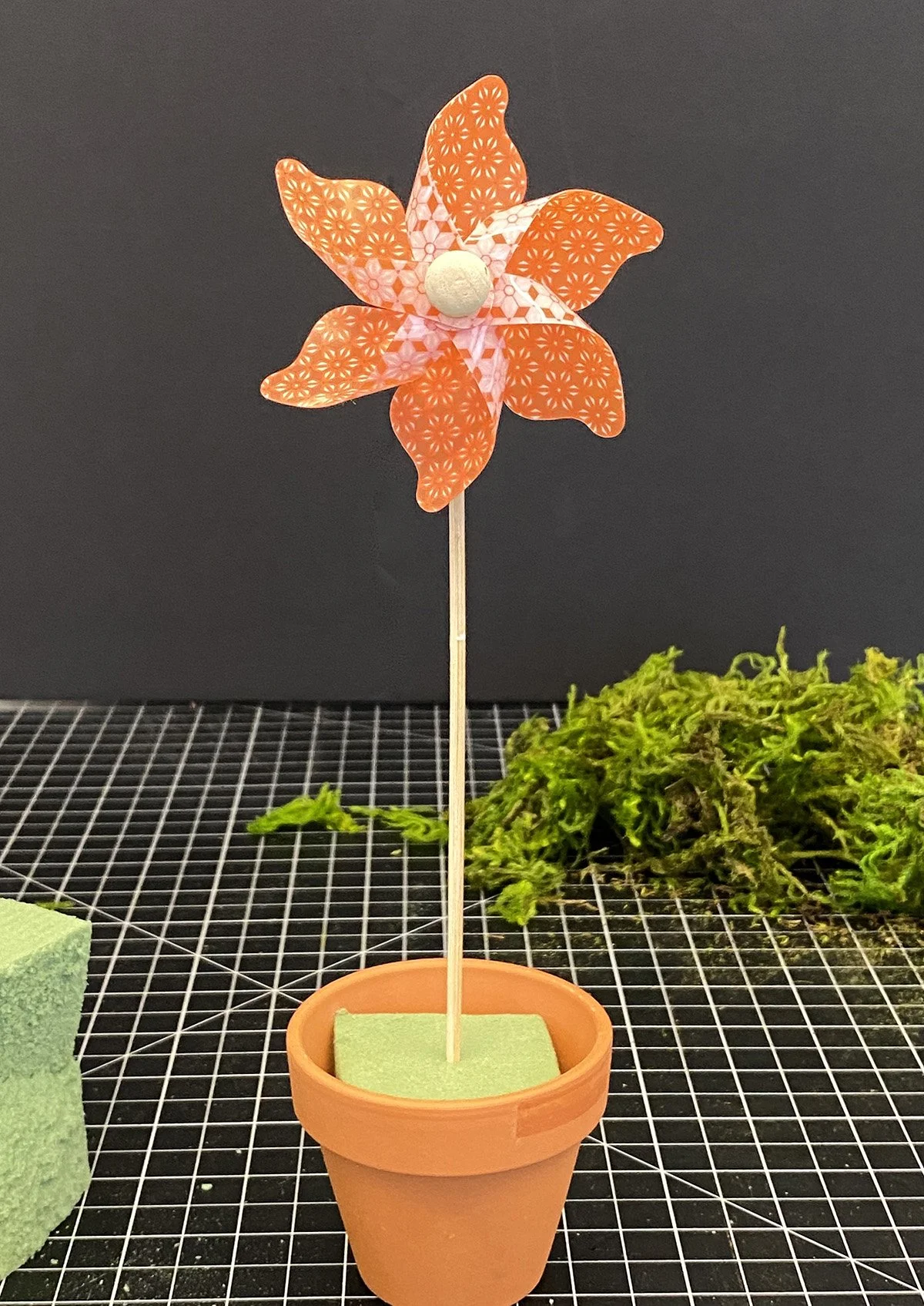 3) Cut your pinwheel to the height that you choose and push the stick into the foam.