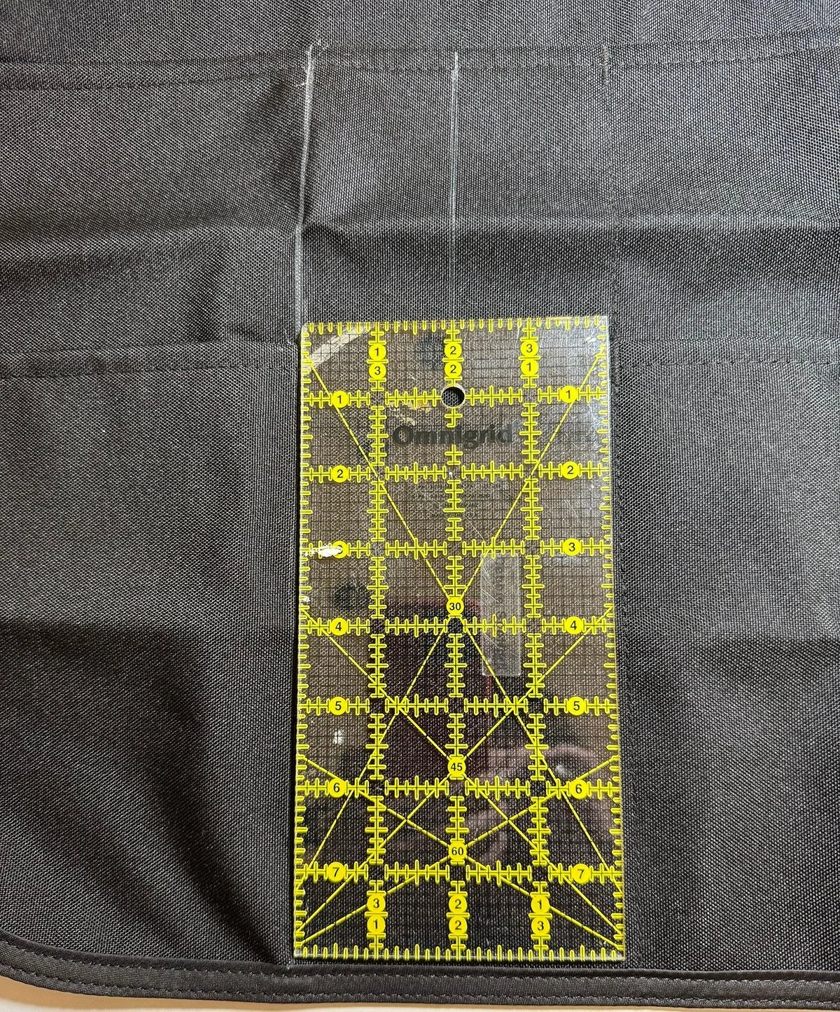 3) Pin or hold the lower pocket out of the way, then stitch the 2-inch pocket from top to bottom. This stitch line will run beneath the lower pocket.