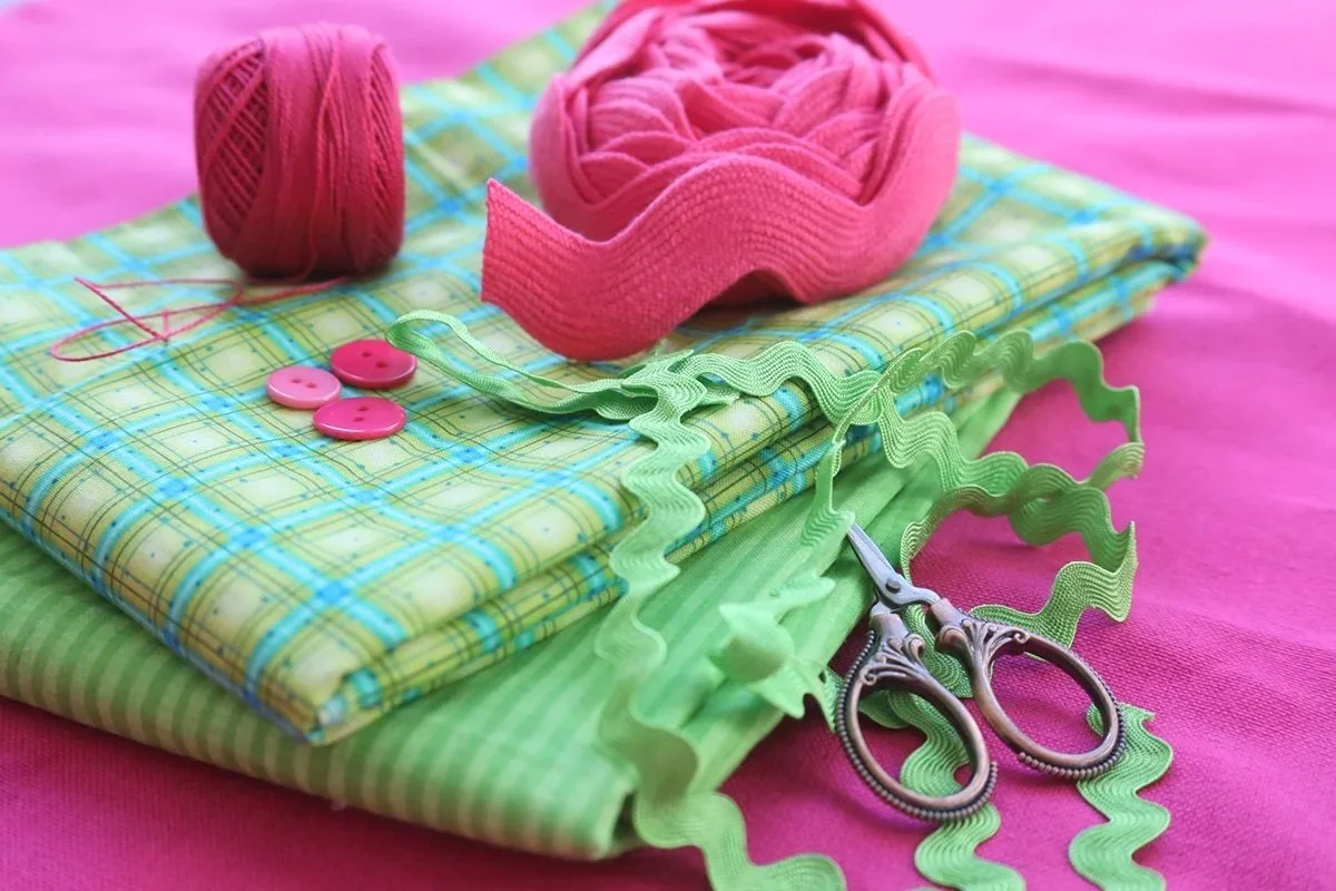 Fabrics scraps in a variety of bold colors and patterns