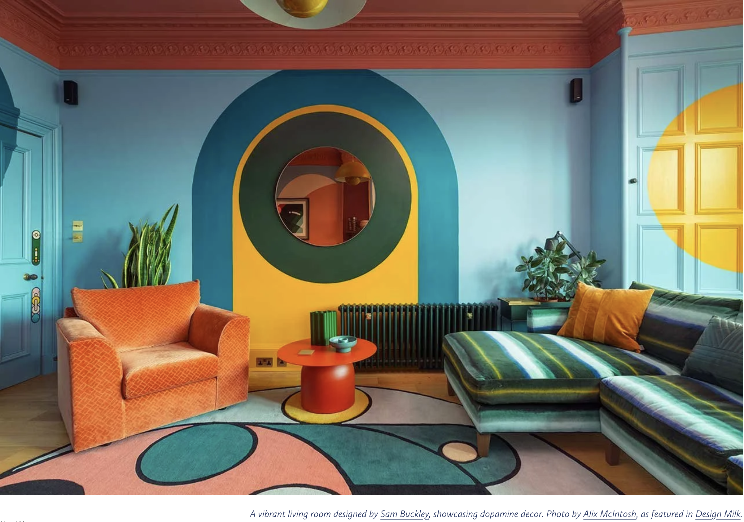 “Dopamine style decor is focused on boosting mood and emotional well-being by filling spaces with vibrant colors, playful patterns, and personalized, nostalgic, or whimsical items. It promotes joy through layering, eclectic, and energy-inducing choices, such as bright art, mixed textures, and bold, saturated hues.” (gemini, 26)